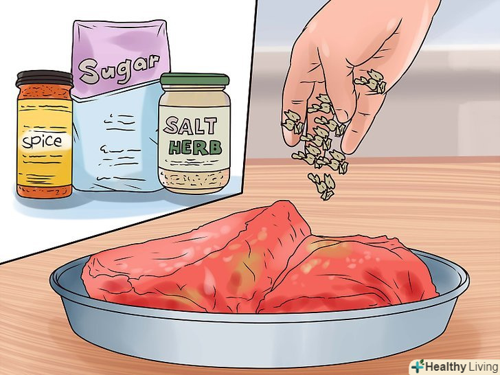 Приправте м'ясо цукром, сіллю і травами, або покладіть в кислий маринад, коли будете готувати його в коптильні.