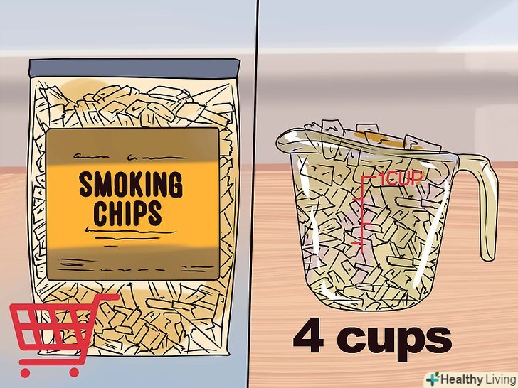 Купіть тріски для розпалювання.ви можете купити їх у бакалійному магазині, в крамниці або в Інтернеті.- Додайте в контейнер з трісками тріски вільхи, вишні, кедра, сливи, клена або пекана. Вам буде потрібно приблизно 4 склянки трісок на кожні 3-5 годин копчення.