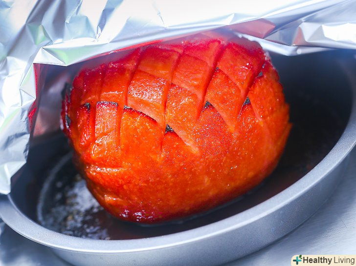 Намажте окіст сумішшю для глазурування, коли внутрішня температура досягне 57o C. це повинно статися за півгодини до закінчення запікання окосту. Перевірте показання термометра і акуратно витягніть окіст з духовки.- Візьміть пензлик для змазування випічки і намажте окіст сумішшю, намагайтеся потрапляти якомога більше в надрізи.