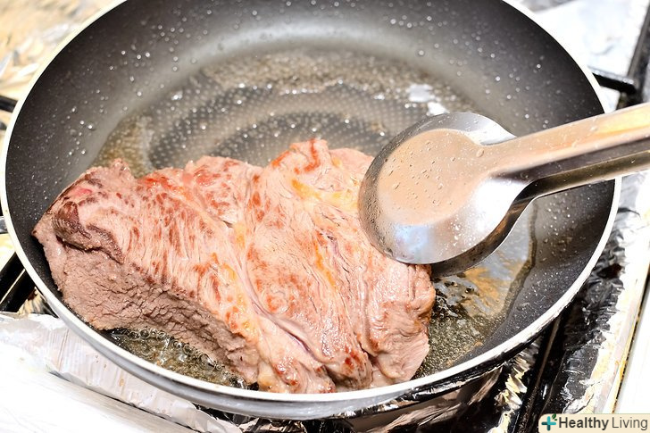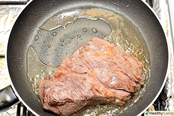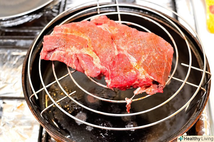 - Якщо ви хочете, щоб під час приготування стейка в духовці з елементом гриля, у м'яса була більш товста скоринка, обсмажте м'ясо на сковороді на середньому вогні приблизно по 2-3 хвилини з кожного боку. Це також заблокує всі соки всередині, перш ніж ви приступите до обсмажування в духовці.