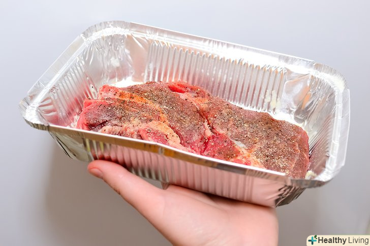 Покладіть приправлений стейк в неглибоку форму для запікання.