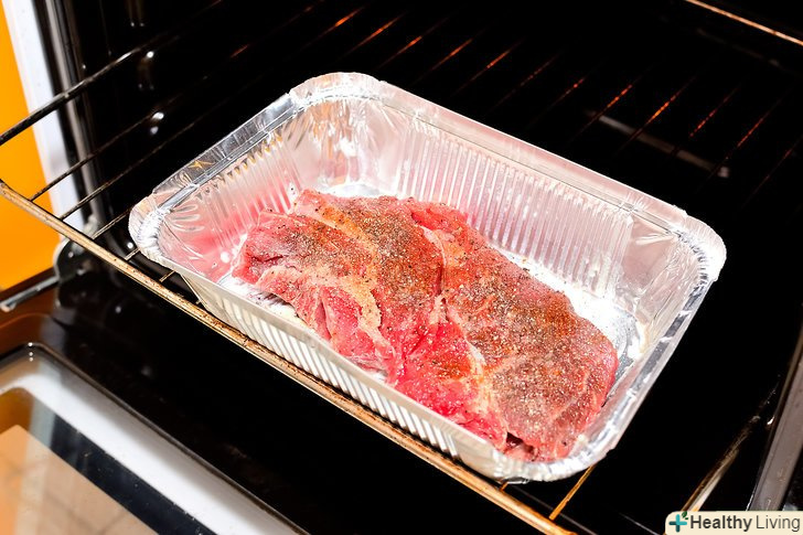 Поставте каструлю в духовку.поверхня м'яса повинна бути приблизно в 5-7, 5 сантиметрах від нагрівального елементу.