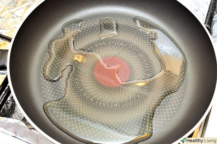Розігрійте сковороду на плиті на середньому вогні.налийте в сковороду чайну ложку або дві рослинного масла і почекайте, поки воно не почне диміти.