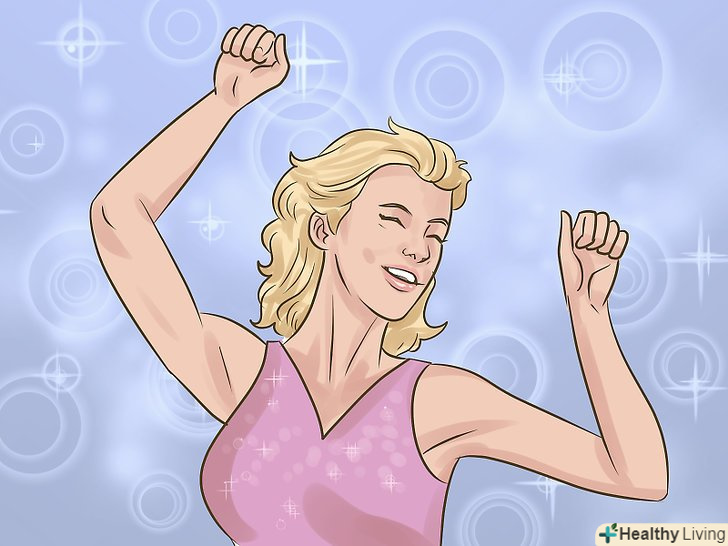 Посміхайтеся і отримуйте задоволення.кращий спосіб перестати соромитися виступати на публіці-стати більш впевненим, навіть якщо впевненість — не ваш коник. Випряміть спину і підніміть підборіддя. Це додасть вам впевнений вигляд. Весь час посміхайтеся і насолоджуйтеся часом, проведеним на танцполі. Це допоможе відчувати себе більшвпевнено при виконанні різних танцювальних рухів.[1]- Не дивіться в підлогу і не озирайтеся назад. Інакше будете виглядати так, ніби ви соромитеся і відчуваєте себе не дуже комфортно.