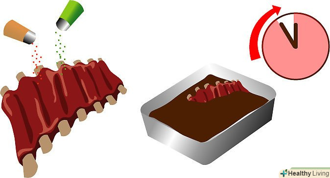 Приправте м'ясо до приготування.ви можете натерти ребра сухими приправами або маринувати їх в улюбленому соусі.- Зробіть суху суміш з цукру, солі, спецій та / або трав.
