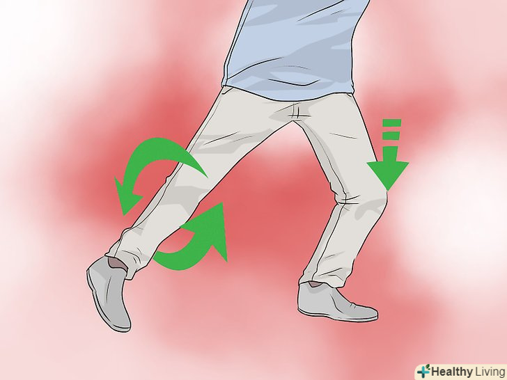 Робіть" застряглою " ногою кругові рухи.на даний момент, ваша права нога - це» стінки " нога – нога, яка просто не функціонує правильно. У той час як ви ставите ліву ногу вниз, ви повинні стояти на внутрішній стороні правої ступні. Рухайте цією ногою по колу, таким чином, щоб ваше коліно майже поверталося до лівої опущеної ноги. Так, це буде трохи дивне відчуття, але воно повинно бути таким.