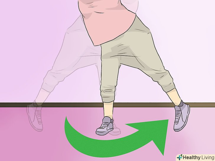 Виставте ліву ногу вперед.поставте її на підлогу. Ви можете також почати з правої ноги, якщо хочете – головне постійно міняти ноги.