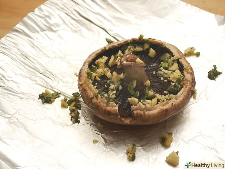 Помістіть гриби і невелику кількість суміші на кожен квадрат фольги і рівно розподіліть.