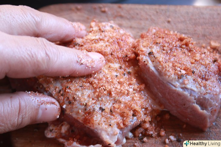 Підготуйте суху приправу.засипте всі інгредієнти в невелику миску і як слід перемішайте їх рукою або віночком. Вам знадобиться наступне: [15]- 1 столова ложка (17 грамів) крупнозернистої солі;