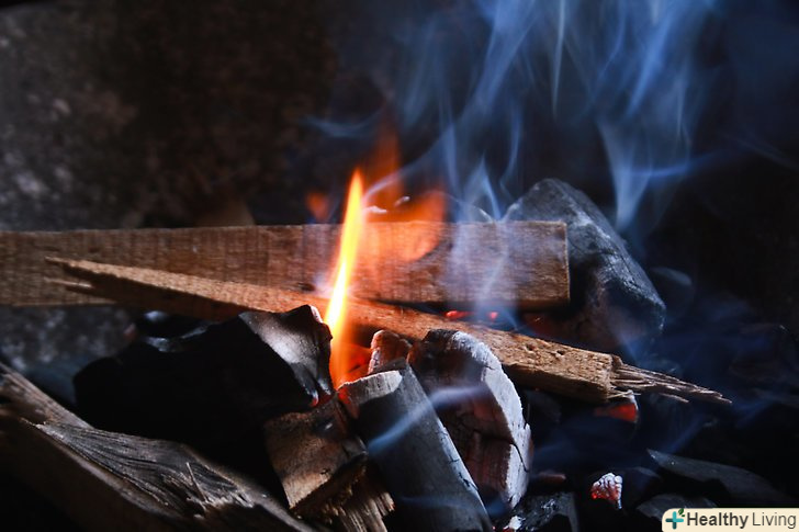 Підготуйте вугільний гриль.розпаліть Вугільні брикети і покладіть їх під одну половину нижньої решітки гриля. Таким чином ви створите дві зони: гарячу і більш прохолодну, яка не знаходиться прямо над вогнем. Посипте брикети 1 1/2 склянки (135 грамами) тирси, щоб надати диму аромат.[17]- Не використовуйте газовий гриль, так як на ньому ви не зможете як слід прокоптити м'ясо.