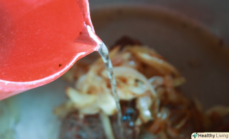 Підсмажте нарізану кільцями цибулю.поставте сковороду на плиту і додайте 1 столову ложку (15 мілілітрів) оливкової олії. Включіть плиту на середній вогонь і наріжте тонкими кільцями 700 грамів жовтого або червоного лука (приблизно 2 великі цибулини). Коли сковорода розігріється, висипте в неї цибулю. Час від часу помішуйте цибулю і смажте його приблизно 20 хвилин.[1]- Коли цибуля буде готовий, він карамелізується, тобто стане золотисто-коричневим.