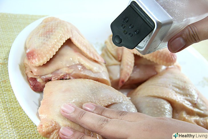 Натріть курку сіллю.не бійтеся використовувати для цього руки, так як це єдиний спосіб натирання курки.