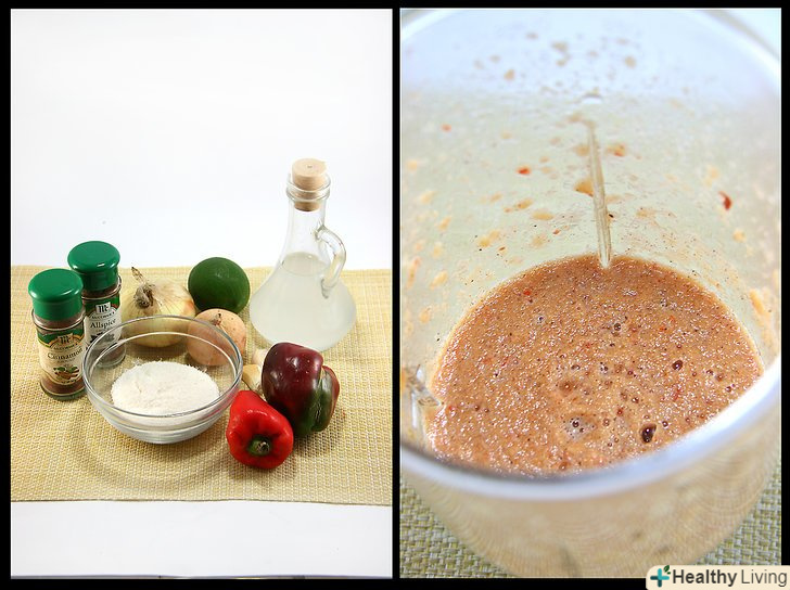 Подрібніть в блендері жовту цибулю, цукор, корицю, часник, запашний перець і перець.саме ця суміш надає курці в'ялений аромат.