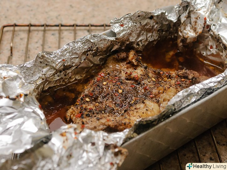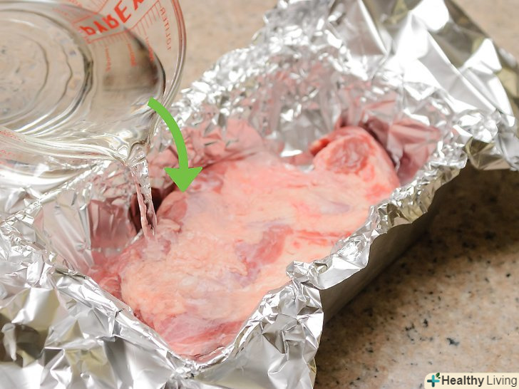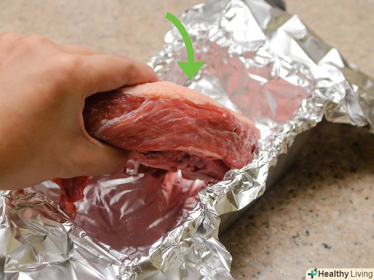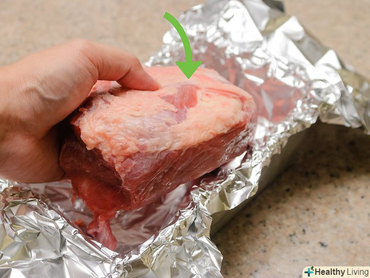 Загорніть грудинку.щільно оберніть грудинку алюмінієвою фольгою, завдяки цьому весь сік залишиться всередині фольги.- Обернути грудинку необхідно для того, щоб сік залишився всередині. Завдяки цьому, ви зможете швидко і рівномірно протушкувати грудинку.