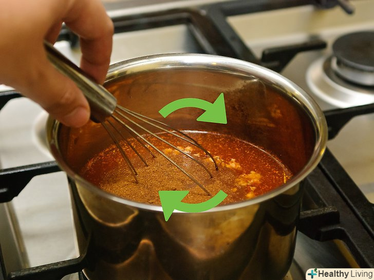 Варіть соус на повільному вогні протягом 5 хвилин.доведіть його до кипіння і готуйте на середньому вогні. Помішуючи, готуйте протягом 5 хвилин, дозволяючи різним ароматам, присутнім у вашому соусі змішатися.[1]- Попереднє підігрівання соусу для барбекю поліпшить смак грудинки, за рахунок ніжного поєднання ароматів. Якщо не зробити цього, грудинка буде нерівномірно приправлена-з одного боку, смак соусу буде більш виражений, ніж з іншого.