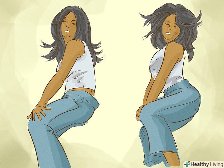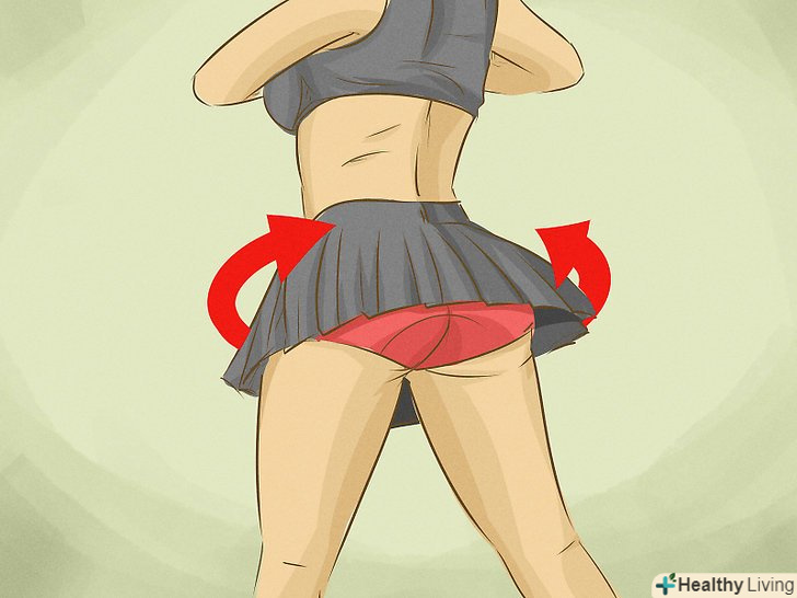 Покрутіться з боку в бік.Прискорте свої рухи, розгойдуючись по сторонах і згинаючись вперед-назад. Покрутіть стегнами вперед і назад. При цьому стежте, щоб ваші сідниці були розслаблені. Не напружуйте їх. Швидко покрутіть тазом, і ви відчуєте, як ваша попа трясеться, і сідниці вдаряються один об одного.- Це окремий рух, при якому слід ворушити тільки тазом. Спина повинна залишатися прямою.