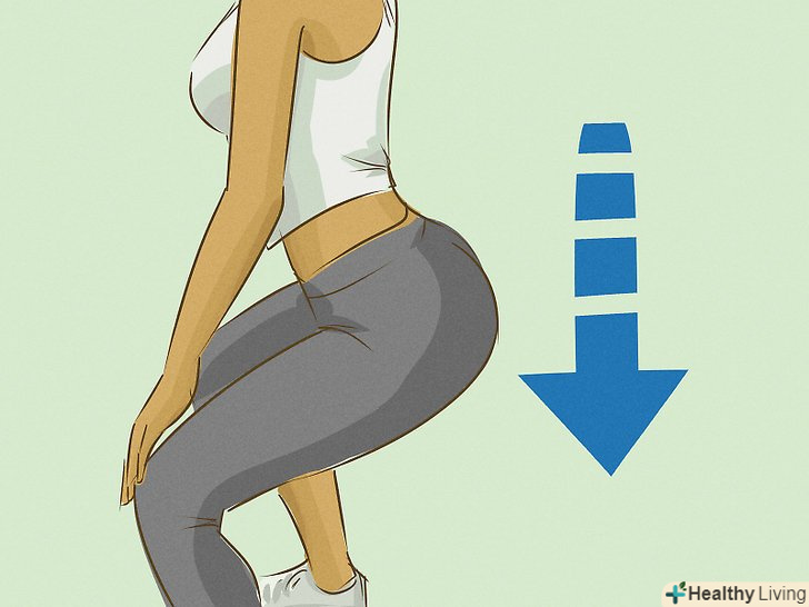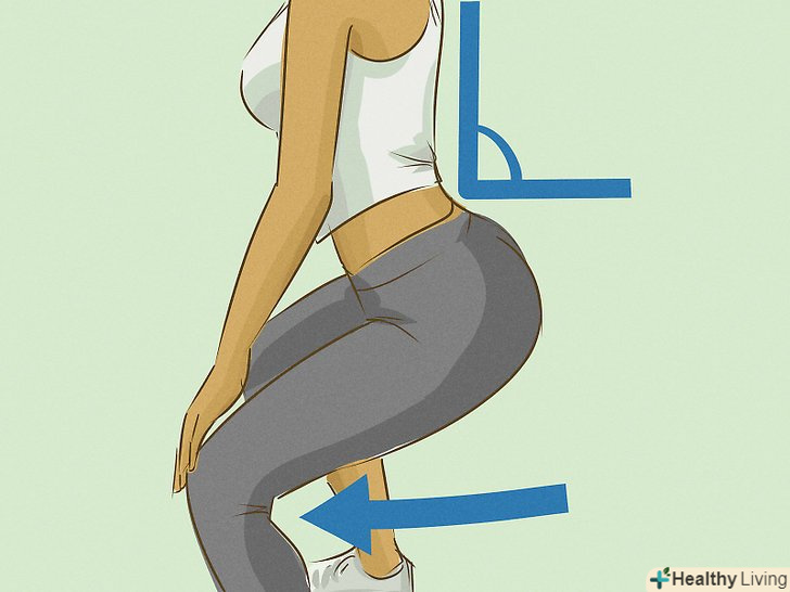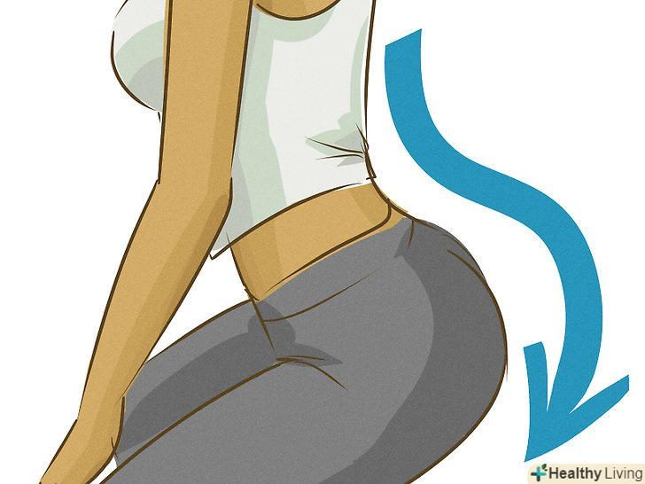 Підведіть таз.тепер нижня частина спини повинна являти собою пряму лінію. Іншими словами, ваш таз повинен розташовуватися під кутом 90 градусів до підлоги, не виступаючи ні вперед, ні назад. При цьому плечі повинні трохи виступати вперед, а ноги слід трохи зігнути в колінах.[1]