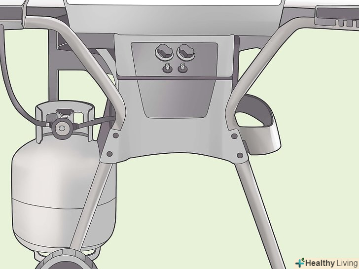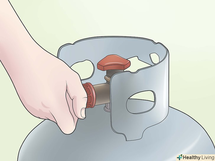 Подбайте про безпеку гриля.переконайтеся, що він стоїть далеко від горючого матеріалу, а його кришка повністю відкрита. Ніколи не приєднуйте балон з пропаном до грилю із закритою кришкою. Якщо пропан випадково включиться, він збереться під опущеною кришкою і може вибухнути, завдаючи серйозної шкоди.- Переконайтеся, що газ повернутий у положення Вимк., перш ніж підключати балон з пропаном до грилю.