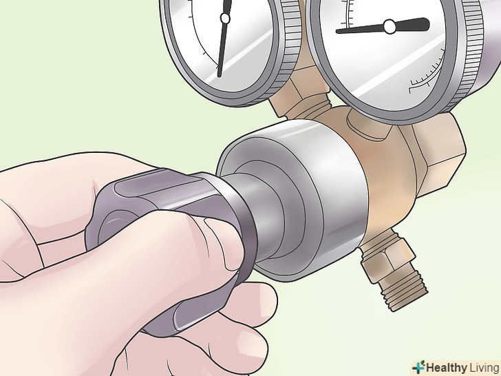 Відкрийте клапан на балоні з газом.клапан повинен бути трикутної форми з написом "захисний пристрій від переповнення".[1]