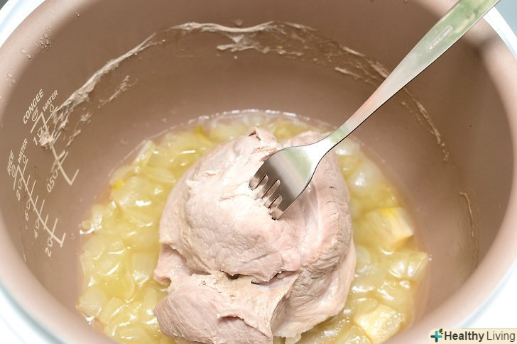 Починайте готувати.накрийте свинину кришкою і тушкуйте на повільному вогні близько 12 годин. Залежно від кількості м'яса і типу вашого горщика (по ситуації, вам потрібно пристосуватися - зменшити вогонь або додати). Ступінь готовності м'яса потрібно перевіряти, проколюючи його виделкою, якщо це виходить у вас з працею, то м'яса потрібно ще трохи часу потомитися на вогні.