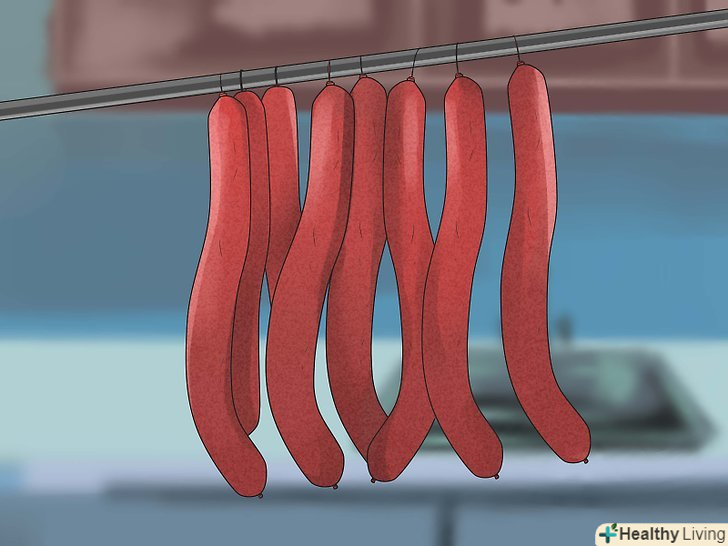 Підвісьте ковбасу.ковбасу, в якій ви зробили кілька ланок, треба підвісити в прохолодному, сухому місці на приблизно годину. Якщо повітря холодне, то навіть на кілька годин.