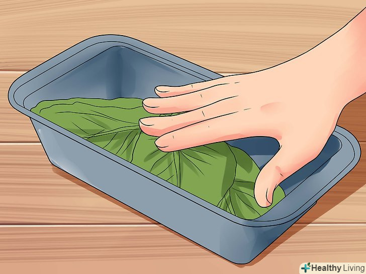 Відваріть 3 листи капусти в киплячій воді, поки вони не стануть м'якими і хрусткими.- Витягніть листя з киплячої води і відразу помістіть їх в крижану воду, щоб зупинити процес приготування.