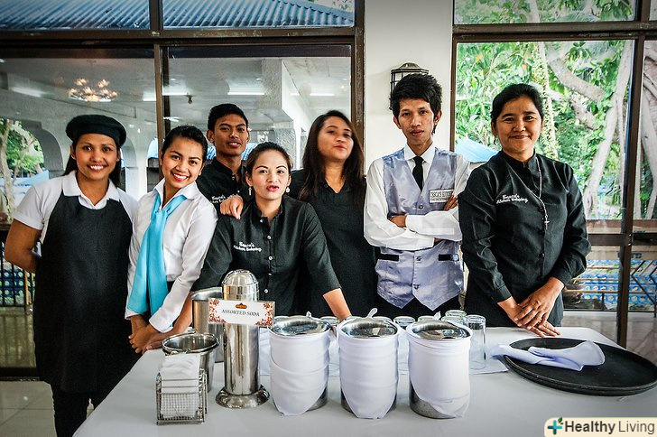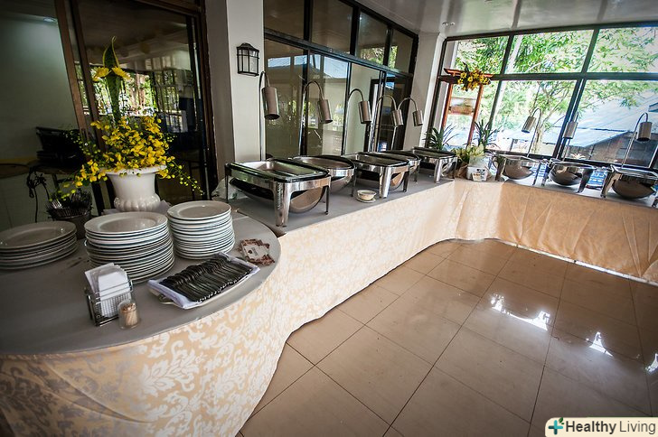 Розставте страви в залежності від їх температури. Першими повинні розташовуватися холодні продукти. Гарячі продукти, які зазвичай є основними стравами, повинні бути в кінці столів. Таким чином, ваші гості не будуть вечеряти холодними основними стравами, коли вони знайдуть свої місця.