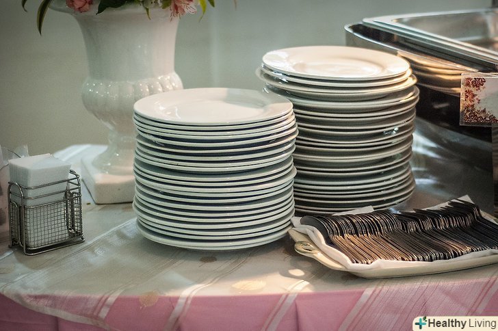 Помістіть тарілки в початок ряду.якщо ви плануєте провести захід з великою кількістю народу, зробіть шведський стіл з 2 або 3 стопками тарілок з приблизно 10 тарілками в кожній стопці. Не складайте тарілки занадто високо, щоб вони не перекинулися.