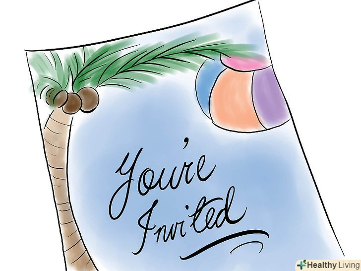 Зробіть запрошення. Можливості нескінченні. Пальми, дошки для серфінгу, надувні м'ячі та хвилі - це лише кілька ідей. Будьте винахідливі.
