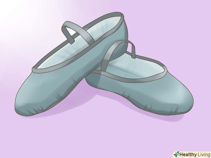 Одягніть правильне взуття.якщо у вас є спеціальне балетне взуття, чудово. Шкарпетки - не найкращий варіант. Краще бути босоніж. Ніколи не надягайте тенісні туфлі або важкі тапочки. Ніколи не надягайте балетки. Незважаючи на те, що вони називаються балетками, для балету вони не призначені!