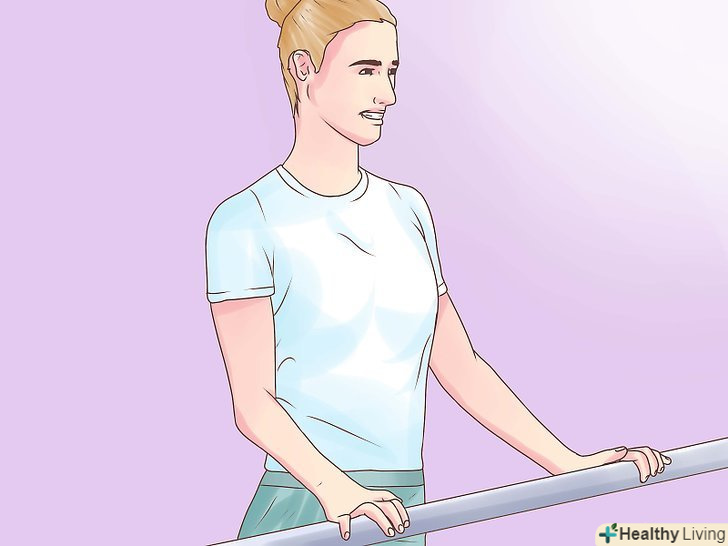 Використовуйте що-небудь як замінник балетного верстата. В балетних студіях завжди стоять спеціальні верстати. Ви можете зробити такий самостійно з дерева, труб або навіть столу і стільців. Якщо ви не хочете робити верстат самостійно, використовуйте задню спинку стільця або стіл. Підійде будь-яка рівна поверхня, яка допоможе вам утримати свою вагу.