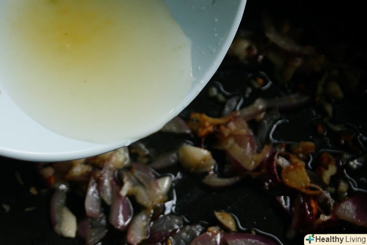 Додайте лимонний сік.зніміть сковороду з вогню і дайте трохи охолонути. Вичавіть сік з однієї половини лимона в сковороду і перемішайте, щоб інгредієнти об'єдналися.