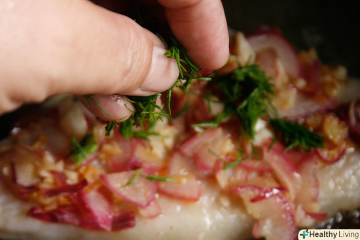 Посипте подрібненим кропом.посипте рибу половиною кропу, перш ніж запікати.- Якщо у вас немає свіжого кропу, замість кожної 1 ст.л. (15 мл) свіжого кропу використовуйте 1 ч. л. (5 мл) сушеного кропу.