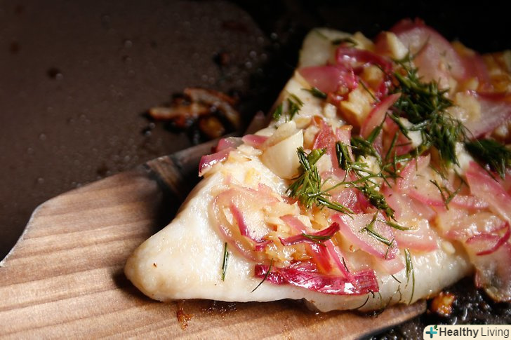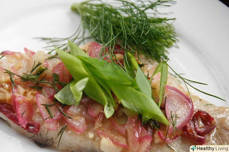 Подавайте в теплому вигляді.перекладіть рибу на тарілку, розділіть навпіл і подавайте.- Притримуйте виделкою в області спинного плавця. Підніміть уздовж хребта, розділивши і розкривши рибу.