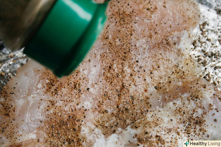 Посоліть і поперчіть.посоліть і поперчіть кожну форель за смаком.- Якщо ви не знаєте, скільки солі і перцю використовувати, почніть з 1/2 ч.л. (2,5 мл) солі і 1/4 ч. л. (1,25 мл) перцю для чотирьох шматків риби.