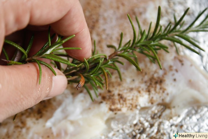 Приправте форель зсередини.розкрийте порожнину кожної риби, помістіть всередину дві гілочки естрагону і дві часточки лимона. Знову закрийте порожнину риби.- Ви також можете використовувати 4 гілочки розмарину замість кропу або естрагону.