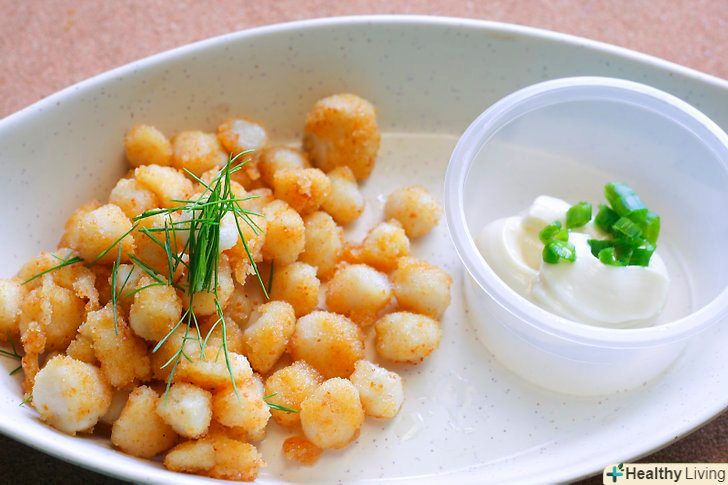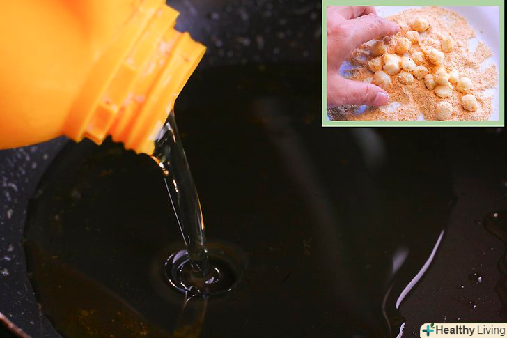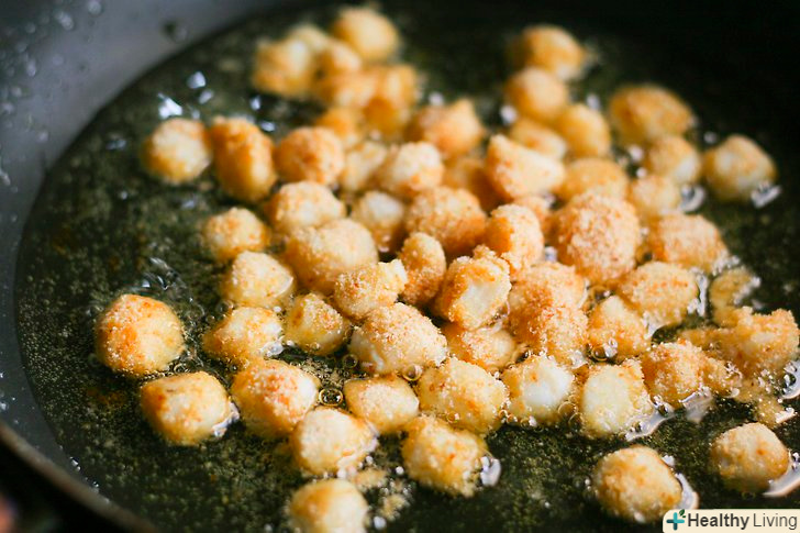 Розігрівайте оливкову олію у фритюрниці або глибокій сковороді.що б ви не використовували, посуд повинен вмістити 7,62 см масла. Поки масло розігрівається, підготуйте кляр і панірувальні сухарі.- Збийте 2 яйця в маленькій мисочці. Додайте ½ чашки води. Занурте гребінці в кляр, а потім обваляйте в сухарях. Кляр буде утримувати панірувальні сухарі на гребінці.