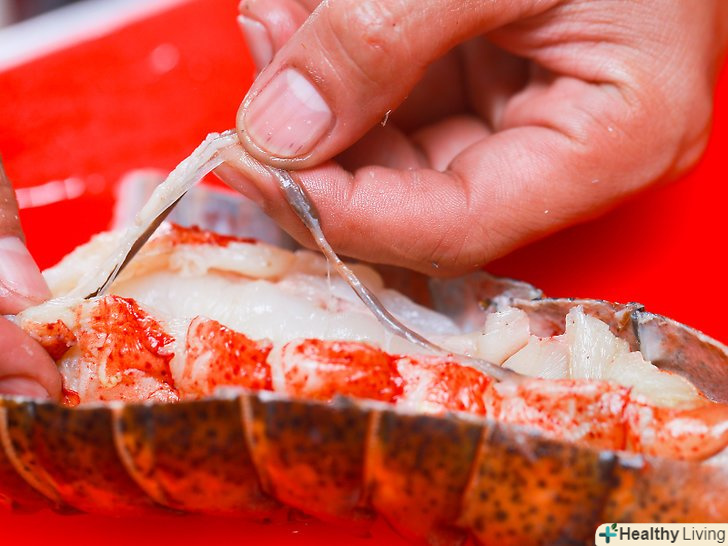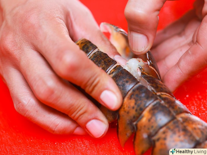 Відокремте м'ясо омара від панцира, а потім витягніть його.