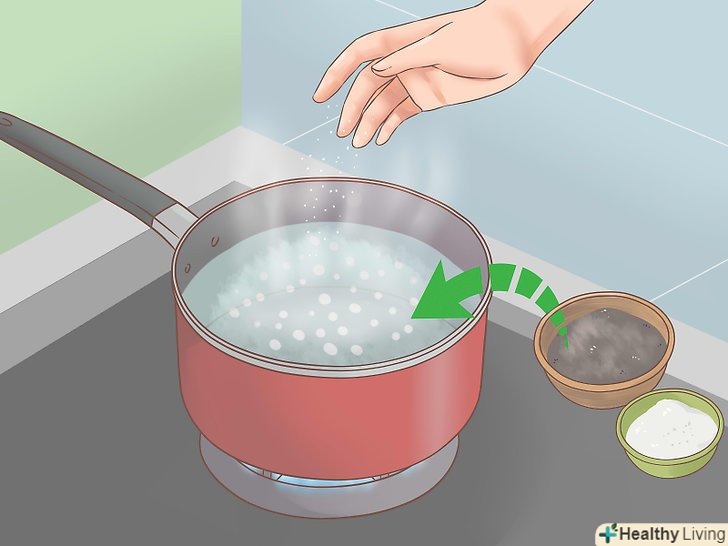 Доведіть воду до кипіння у великій каструлі і додайте сіль у воду.