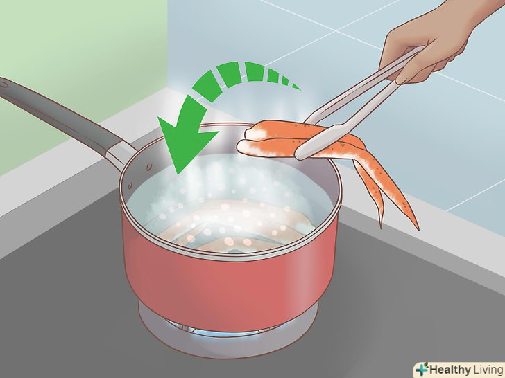 Додайте ніжки краба.переконайтеся, що ніжки краба повністю покриті киплячою водою.