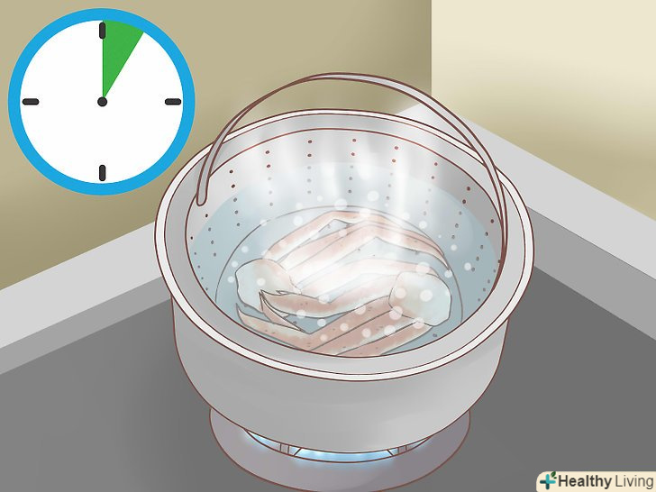 Розкладіть ніжки краба в паровій кошику.покладіть парову корзину над киплячою водою.