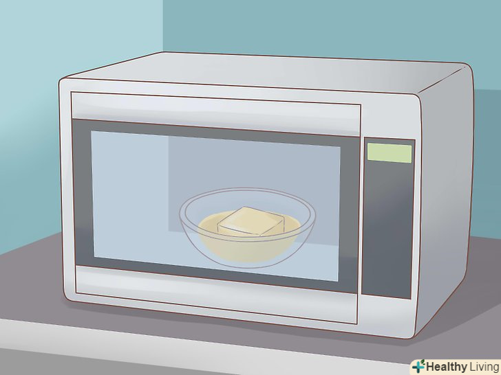 Розтопіть масло в невеликій мисці в мікрохвильовій печі.для корисної альтернативи, використовуйте оливкову олію і не робіть це в мікрохвильовій печі.