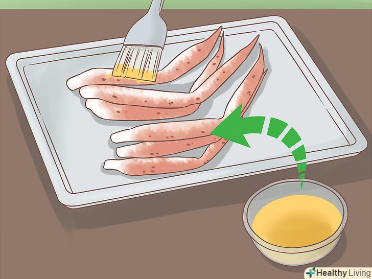 Змастіть вершковим або оливковою олією ніжки краба, використовуючи кондитерську кисть.