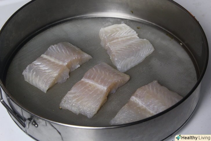 Сполосніть і просушіть заморожену тілапію.візьміть 4 філе тілапії і обполосніть під холодною водою. Перекладіть філе на тарілки і просушіть паперовими рушниками. Розморожену рибу не потрібно обполіскувати і сушити.[13]