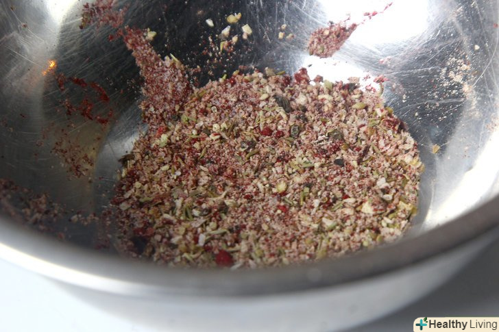 Змішайте в маленькій мисці спеції для чорніння.майте на увазі, що в підсумку вийде більше спецій, ніж вам необхідно для цього рецепта, але суміш можна зберігати в холодильнику кілька місяців. Для приготування приправи змішайте разом:[2]- Паприка – 3 столові ложки (20 грам)
