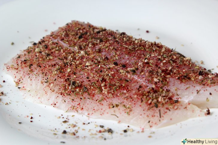 Приправте заморожену тілапію і покладіть у форму.дістаньте з морозильної камери 4 філе тілапії і приправте за смаком сіллю і меленим перцем. Перекладіть рибу в приготовлену форму для запікання і полийте зверху приправленим маслом.[9]