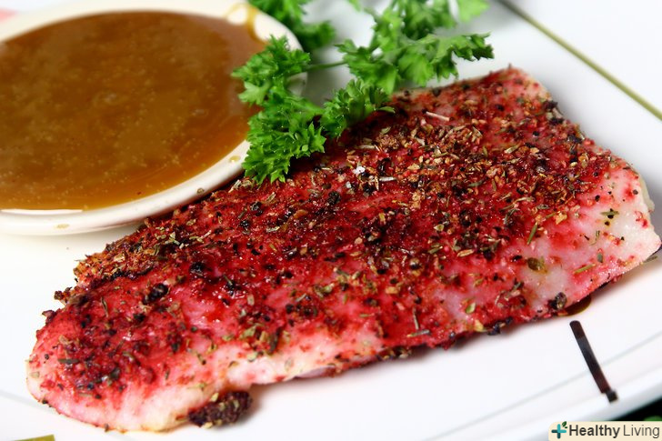 Давайте для початку розберемося з термінами.чорнінням їжі (в даному випадку риби) називають процес, коли її покривають сухими спеціями для додання смаку і аромату, а потім смажать або запікають. Виходить чорна скоринка зовні і дуже соковите м'ясо всередині. Попередньо розігрійте духовку до 230 °C і підготуйте деко. Застеліть каструлю алюмінієвою фольгою. Візьміть 2 столові ложки (30 мілілітрів) оливкової олії першого холодного віджиму і за допомогою пензлика для випічки рівномірно змастіть фольгу. Відставте каструлю в сторону і займіться рибою[1]