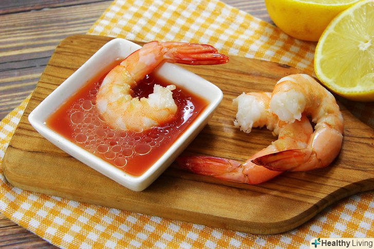 Подавайте креветки в якості закуски.якщо намічається вечірка, розігрійте трохи відварених заморожених креветок. Покладіть їх на блюдо поруч з коктейльним соусом, і гості зможуть весь вечір насолоджуватися закускою з морепродуктів.