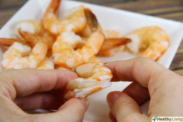 Видаліть кишкову вену.у відварених креветках нутрощі зазвичай видаляють. Але якщо ви помітите темні смужки, які проходять уздовж тулуба, візьміть ножиці і зробіть надріз уздовж спинки тушки. Потім підчепити ножицями вену і акуратно її витягніть.[3]
