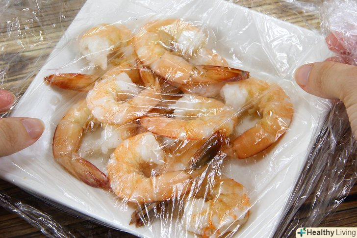 Готуйте креветки в мікрохвильовій печі на високій потужності протягом 1-2 хвилин.покладіть креветки на безпечну для мікрохвильовки тарілку в один шар, збризніть водою і накрийте харчовою плівкою. Готуйте креветки в мікрохвильовій печі на максимальній потужності від 1 до 2 хвилин.[4]- Готуйте ще 30 секунд, Якщо через відведений час креветки все ще недостатньо гарячі.